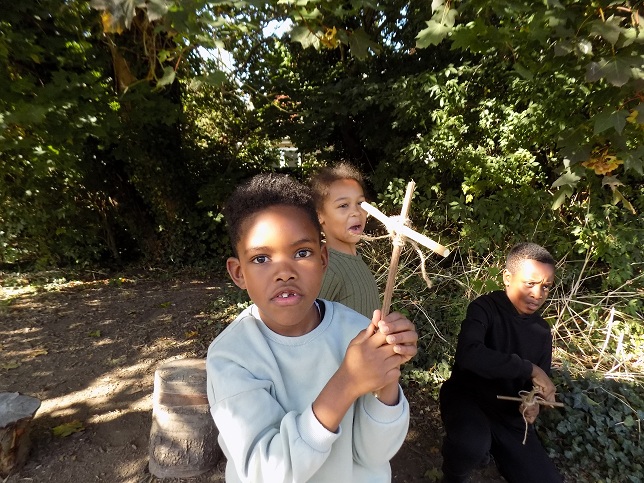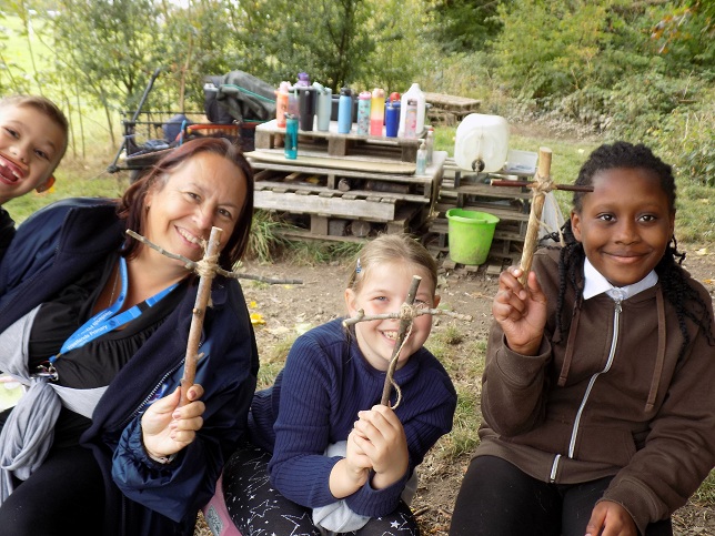 We were learning a crucial outdoor skill at Forest School this week: Square Lashing!