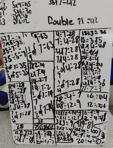 The children have been very busy in Maths, learning about multiplying and dividing. Here is an example of all the multiplication and division facts they have been working on!