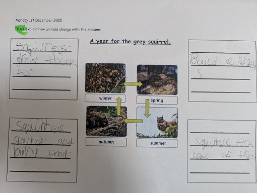 In science we have been looking at seasonal change. We loved learning about deciduous and evergreen trees over the past weeks and this week we learnt how animals are affected by the seasons. Looking at bird migration and hibernation, it was fascinating!