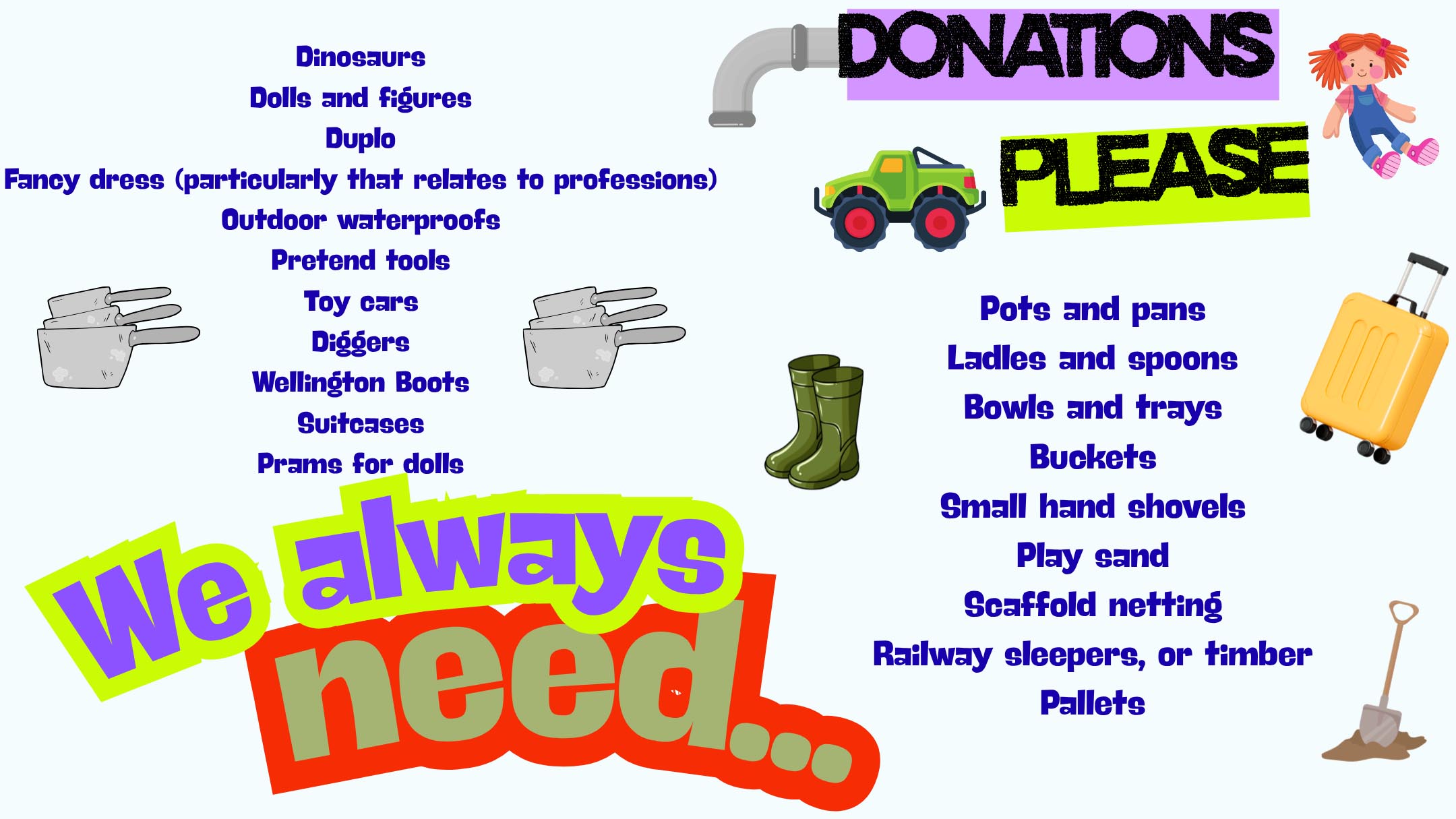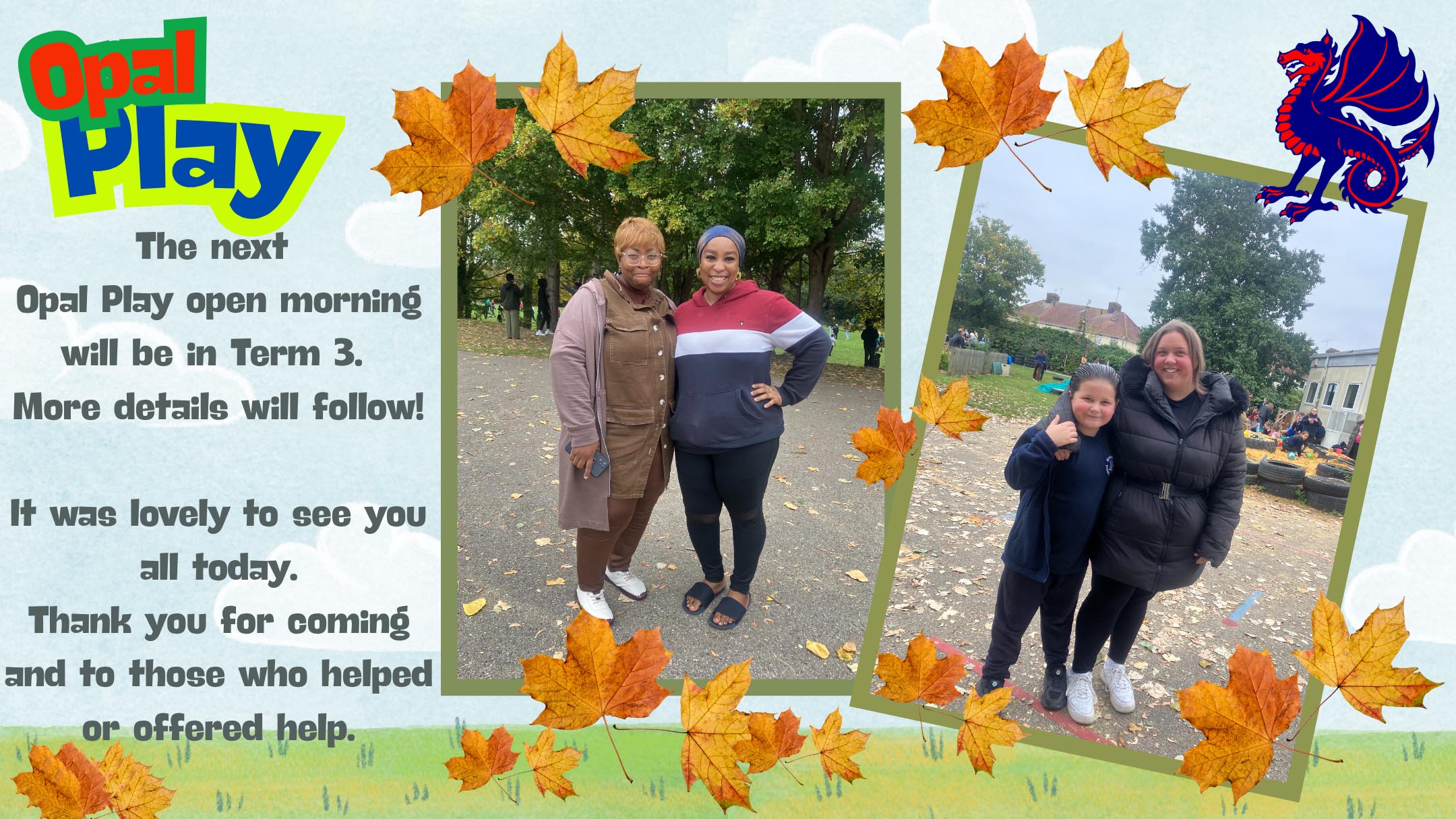 We had a fabulous open play with parents and carers in Term 1. The children enjoyed playing with adults from home and sharing some of the activities that they enjoy evey day at lunchtime. Please keep your donations coming in so that we can provide the children with new equipment to have lots of playtime fun with!